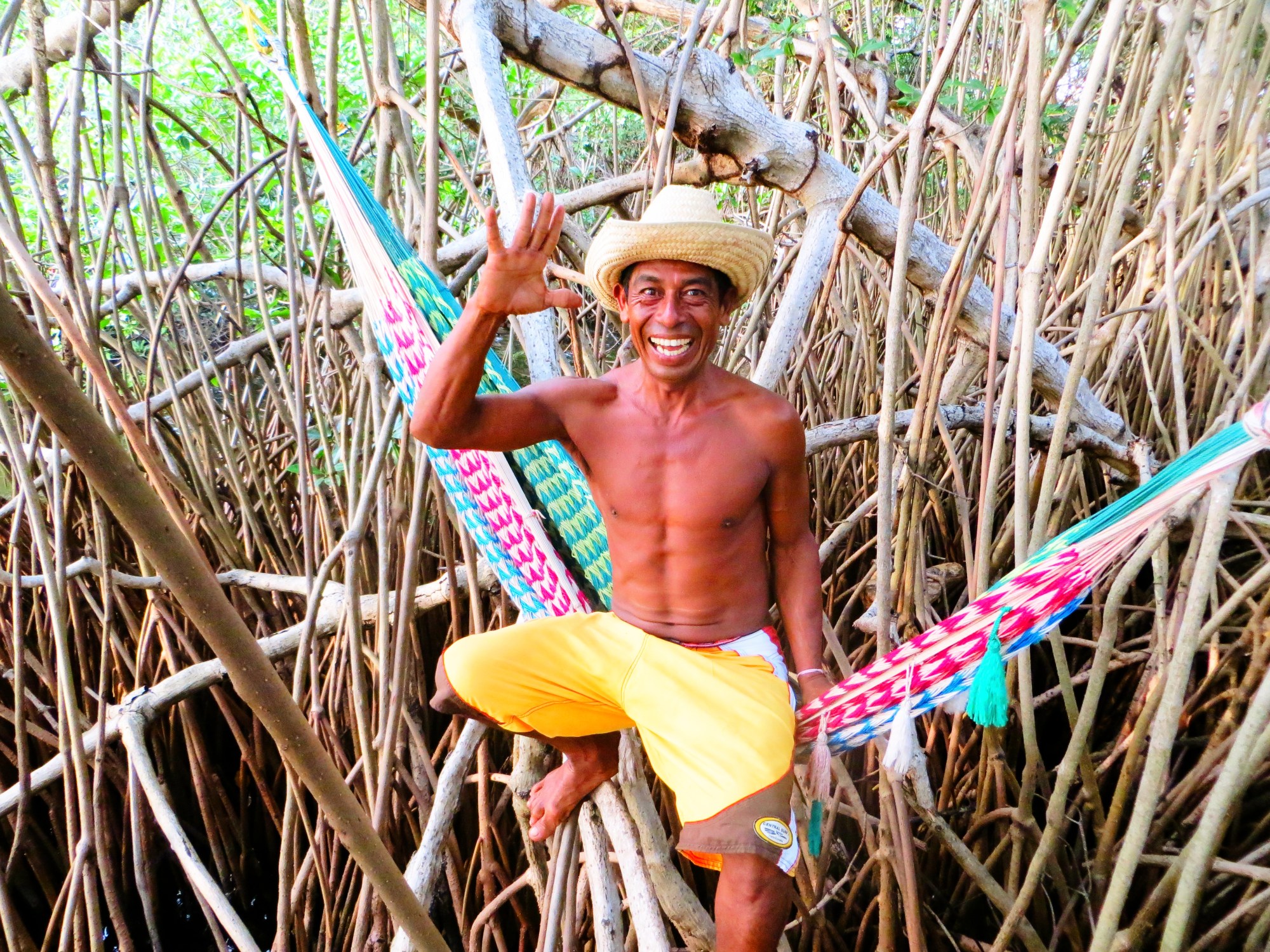 I recently met this lovely wise man in Puerto Escondido, Mexico. He suggested that I might want to visit where he lives; in a lagoon 30 minutes out of town… off we went. He took great pleasure in showing me around. Of course the place looked magical. What was most impressive and contributed to an unusual and very soothing atmosphere was the intensity of the silence. There were some exotic birds and apparently crocodiles & snakes live there too. What was most impressive & interesting was him, Margarito! A unique character with a big heart and so much wisdom. He has been living in his hammock for 15 years. He moves it depending on how he feels like, from one side of this huge lagoon, to the other. If it gets too hot, he just parks his canoe in the middle of the lagoon and sleeps there. He doesn’t fish in the lagoon, avoiding contributing to the issue of overfishing. He spends his nights reading philosophy and learning new languages, using his lamp torch. I visited his house, the largest house there is on earth according to him: the whole lagoon.